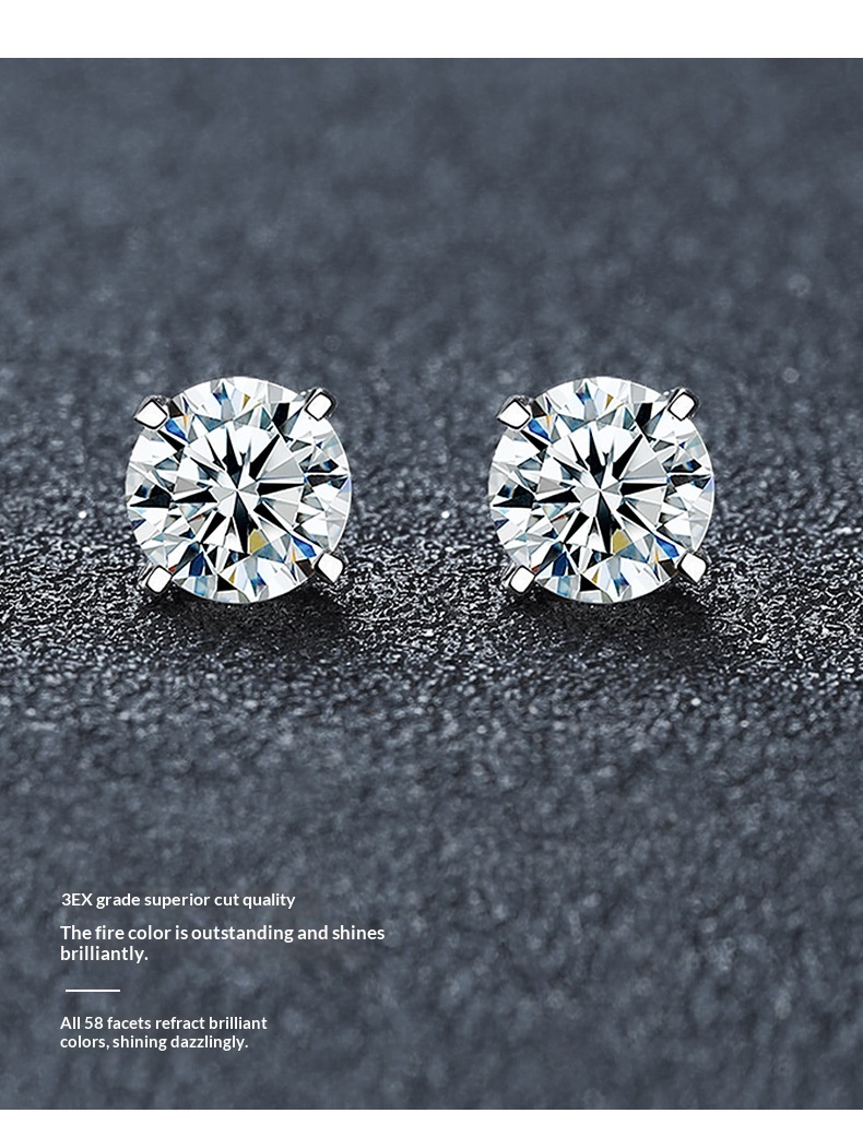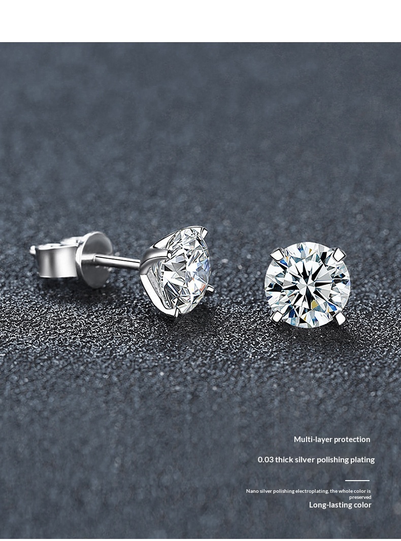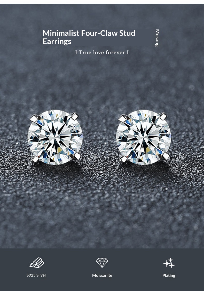 Classic Four Claw Moissanite Stud Simple And Stylish Sterling Silver GoldPlated Earrings