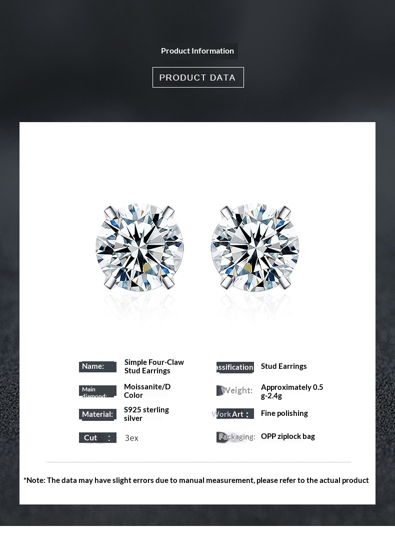 Colors: Four-Prong Stud Earrings—Light Luxury Style (White Gold), Four-Prong Stud Earrings (White Gold), Four-Prong Stud Earrings (Yellow Gold), Four-Prong Stud Earrings (Iridescent Blue Diamond), Four-Prong Stud Earrings (Iridescent Green Diamond), Four-Prong Stud Earrings (AB Color Diamond), Six-Prong Classic Style (White Gold), Six-Prong Classic Style (Yellow Gold), Four-Prong Classic Style (White Gold), Four-Prong Classic Style (Yellow Gold), Square-Shape Stud Earrings (White Gold), Square-Shape Stud Earrings (Yellow Gold), Double-C Stud Earrings (White Gold), Double-C Stud Earrings (Yellow Gold)
