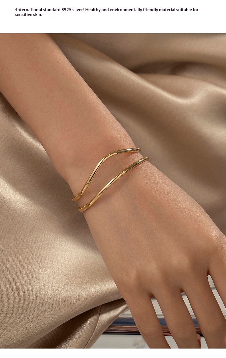 S925 Silver Minimalist Double-Strand Line Bracelet For Women