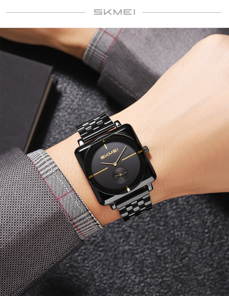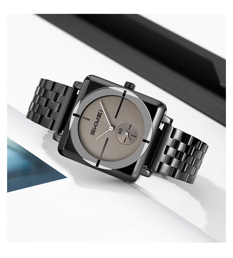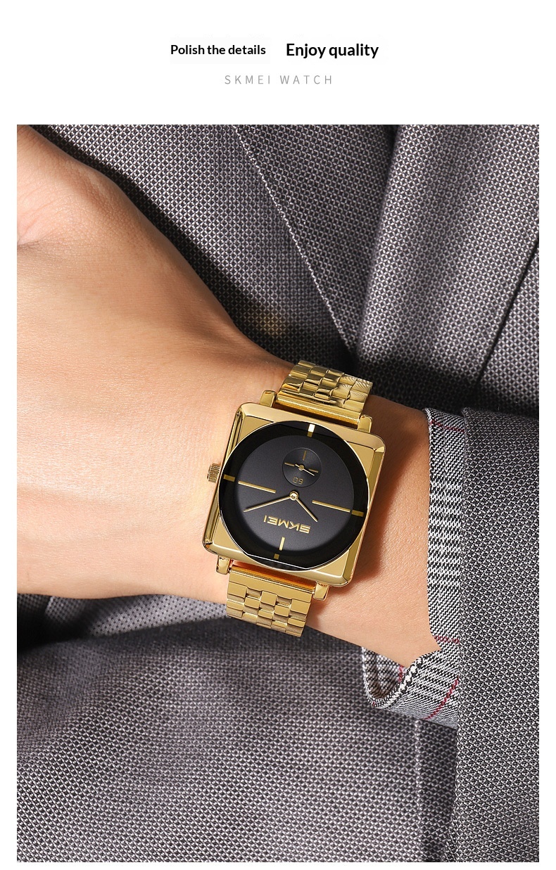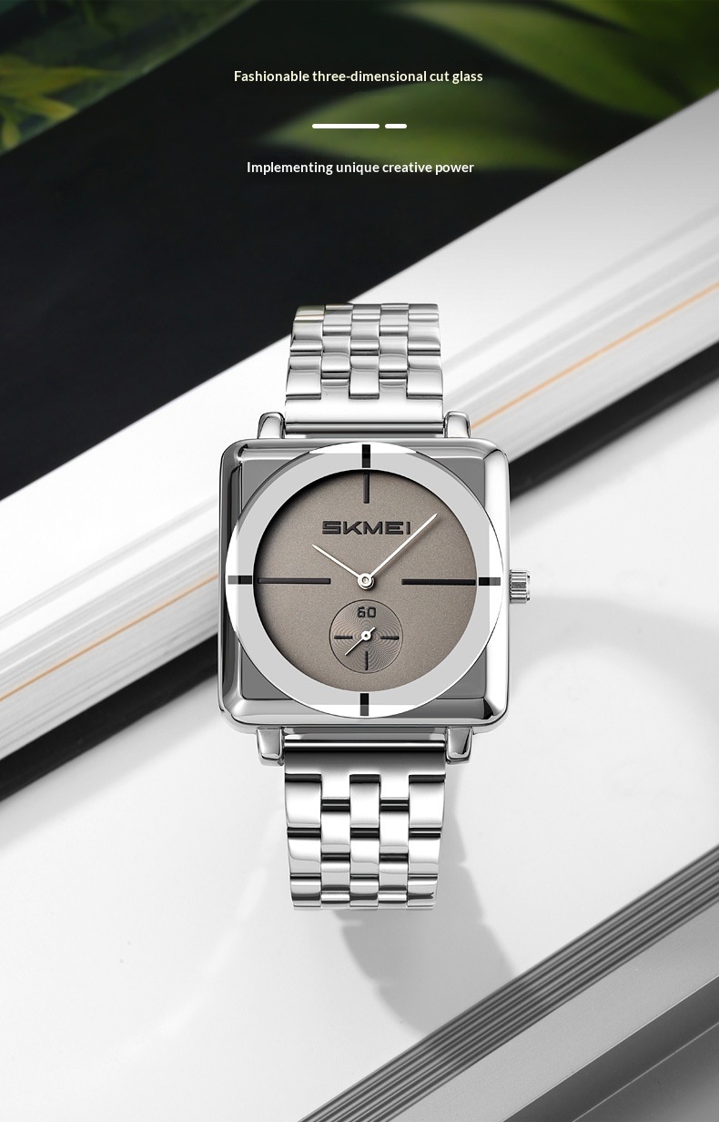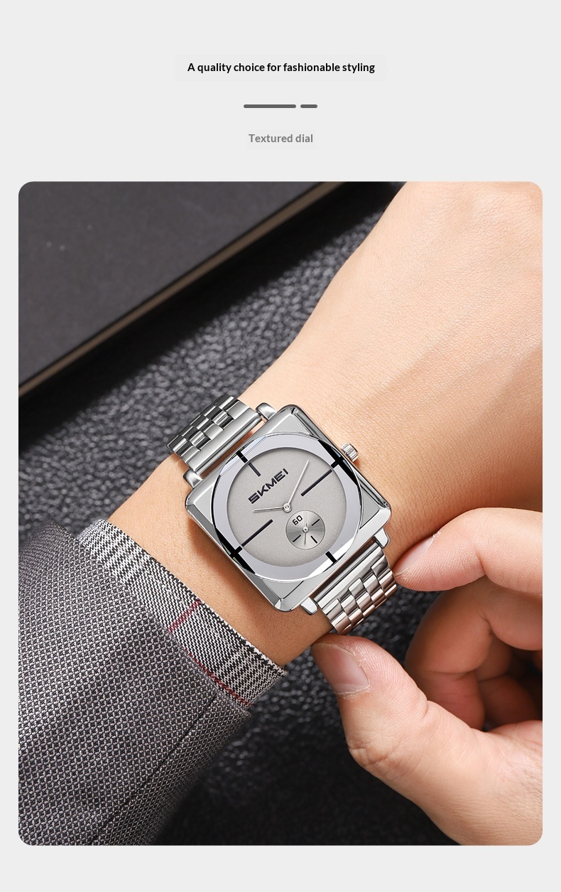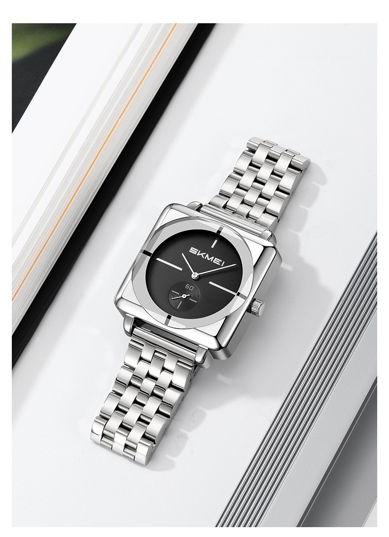 Square Steel Band Stylish Standalone Seconds Subdial With Two Hands Solid Steel Band Quartz Watch